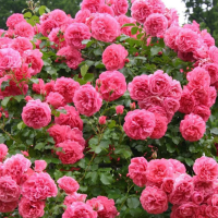 Розариум Ютерсен – это плетистая роза, которая представляет собой пышный куст. Во время цветения на его ветвях распускаются крупные бутоны 10-12 см, цвет которых варьируется от яркого малинового до темно-розового. Лепестков на цветке очень много – около 100. Они имеют волнистую форму и мясисты на ощупь. С оборотной стороны их цвет приобретает серебристый оттенок. Запах сладковатый и ненавязчивый.