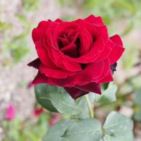 Цвет бутона красно-пурпурной группы. При полуроспуске верхняя часть лепестка имеет цвет красный с четко просматривающимися прожилками. Цветки на цветоносах расположены по одному. Цветки с высоким центром, лепестки слегка закручены наружу, с немного фестончатым краем. Среднее количество лепестков в обычных условиях 40-45 штук. Обладает приятным ароматом. Лепестки толстые, круглые. Листва овальная, острая, зазубренная, зеленого цвета. Количество колючек не большое.
